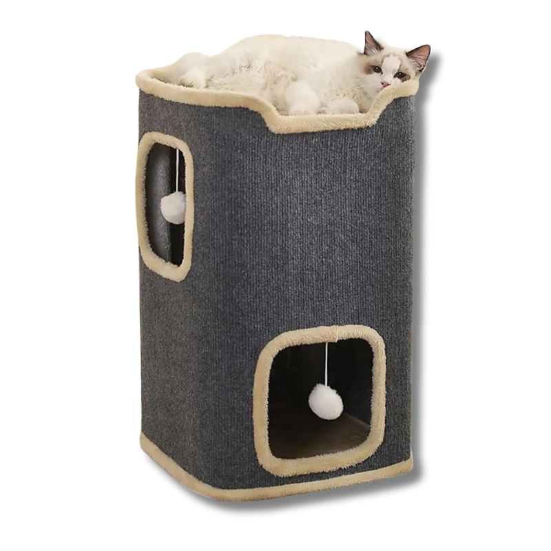 More than just a cozy retreat, the Pawrie Cat Loft is a three-level retreat for rest and fun. Strategic openings on the first and second floors stimulate curiosity and hunting instincts, while the upper level offers a soft bed for hours of pure comfort. Elegant design, sturdy construction, and irresistible comfort—the perfect home for your feline.