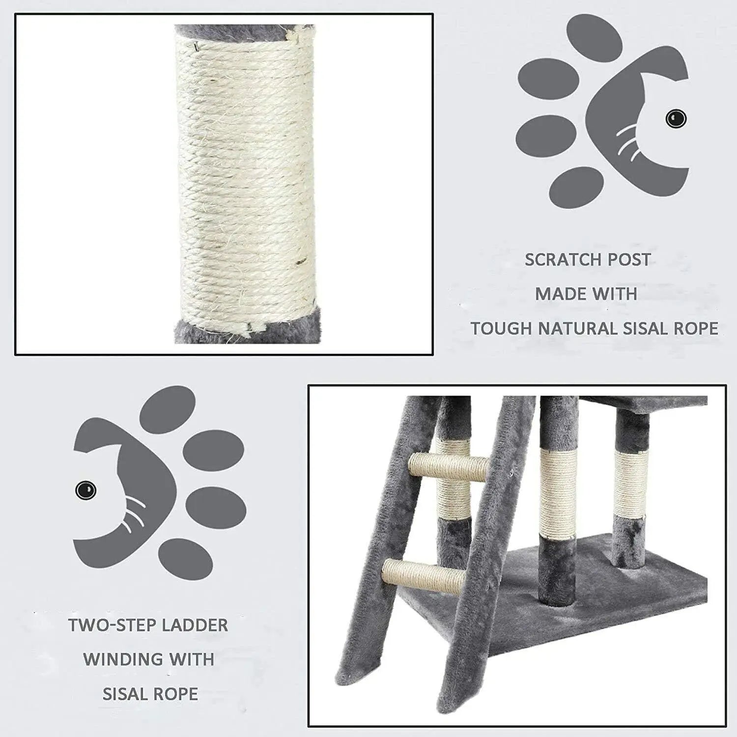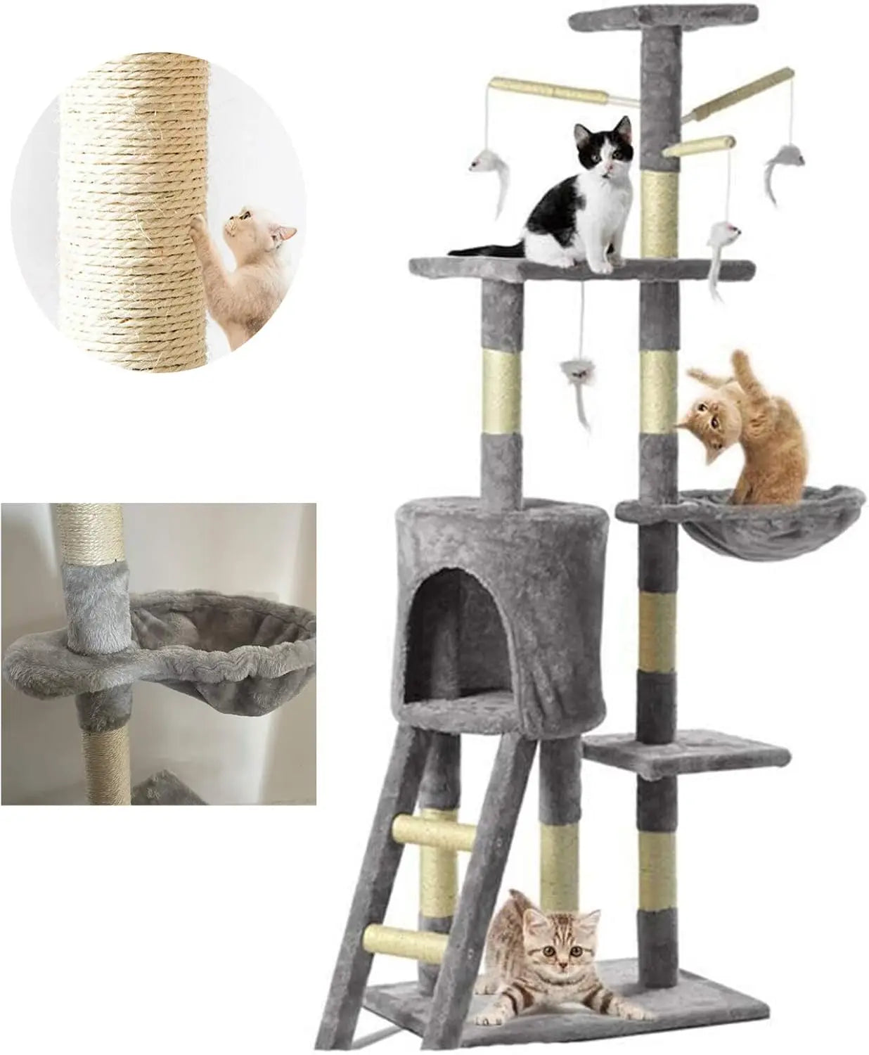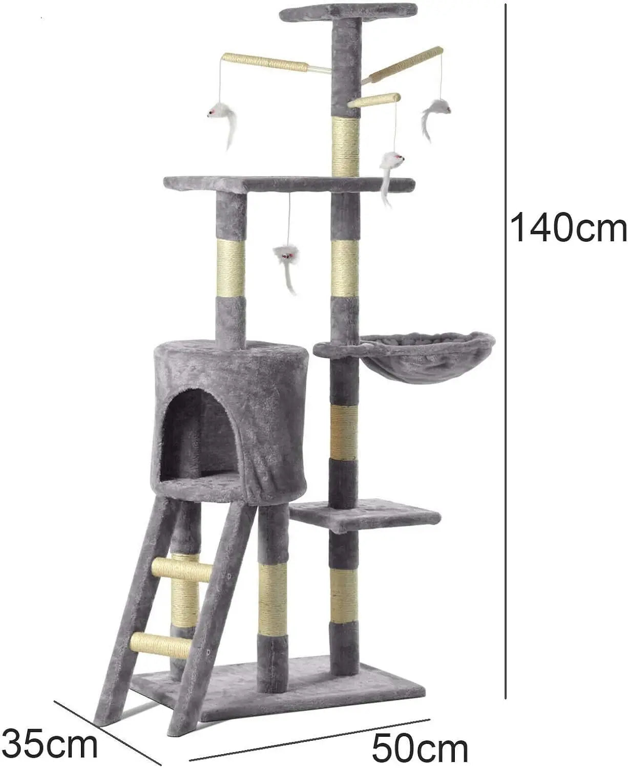 With a sturdy 50x35cm baseboard and strong structure, it holds up to 20kg, making it safe for multiple cats. From lounging in the soft nest to climbing the ladder or chasing playful hanging toys, your feline friends will have endless ways to relax and stay active — all in one elegant design.