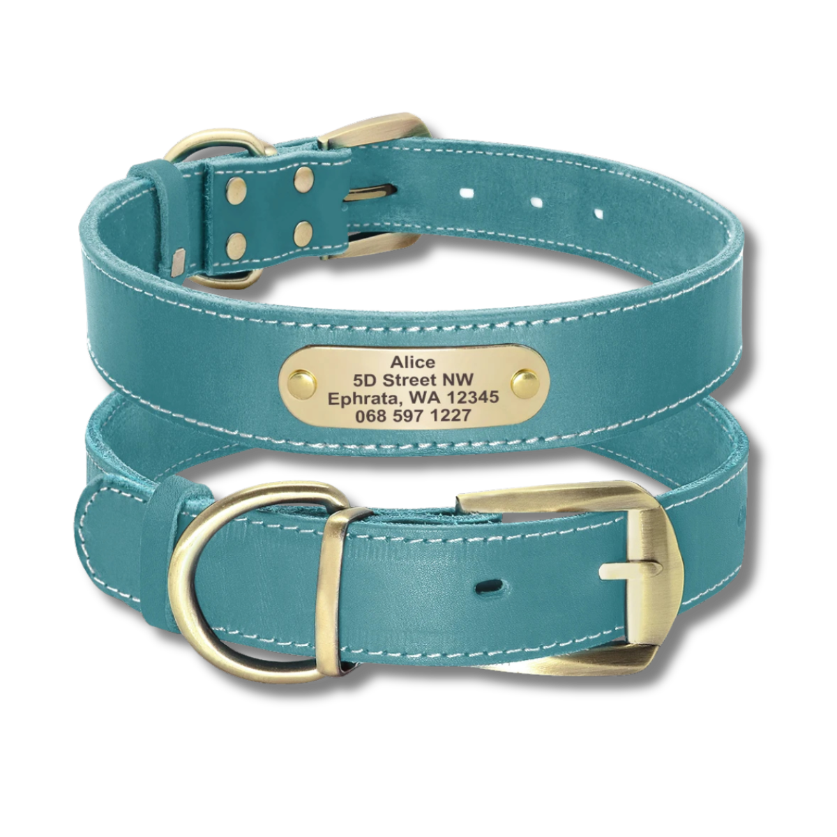 Custom Leather Dog Collar - Blue - 2XS to XL.