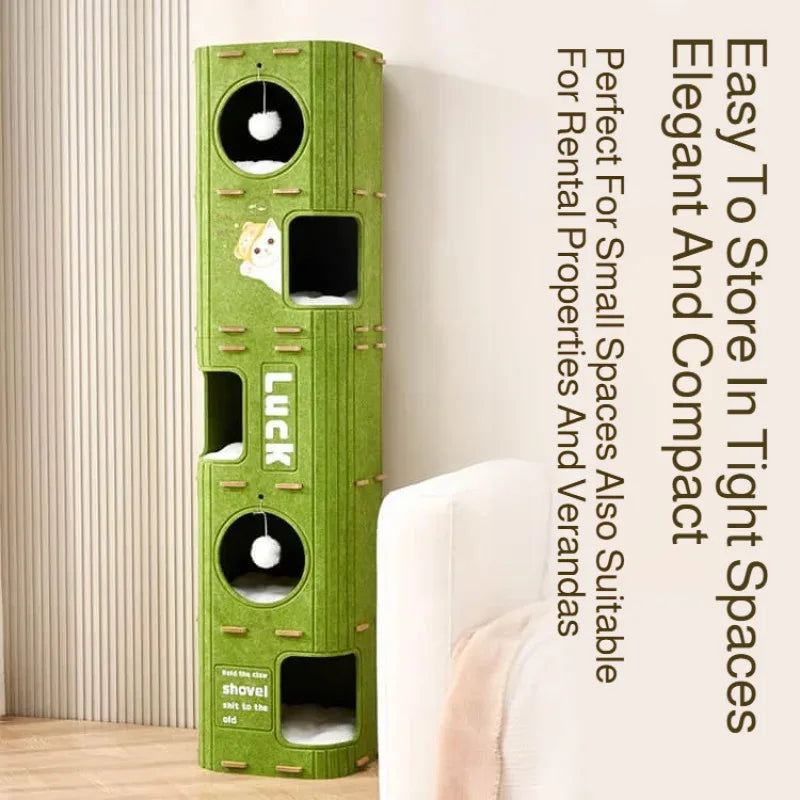 Pawrie Luxe Multi-Layer Cat House – Scratching, Play & Comfort in One - Green | 90cm