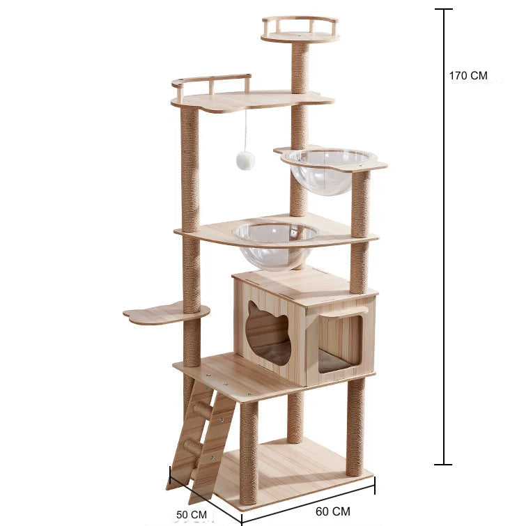 Crafted with natural sisal-wrapped posts, it encourages healthy scratching while preserving your home. Its strengthened base ensures stability and safety, while the ultra-soft plush finish creates a cosy sanctuary. Whether they are lounging, climbing, or snoozing, your cats will feel right at home in this premium retreat.